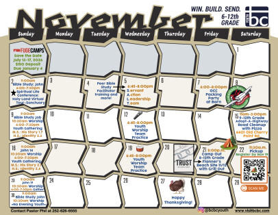 Click the November Calendar image above to download for better viewing or pick one up from the Deep Creek Kiosk!