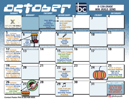 Click the October Calendar image above to download for better viewing or pick one up from the Deep Creek Kiosk!