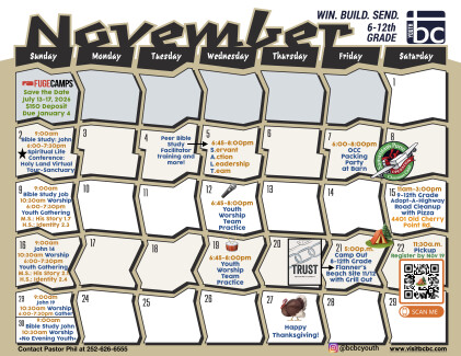 Click the November Calendar image below to download for better viewing or pick one up from the Deep Creek Kiosk!