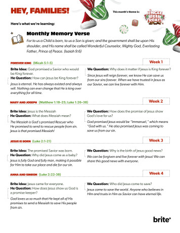 Christmastime holds promises—joy, lights and even sweet treats. Kids will learn about the sweet promises God kept at Christmas. As someone may have anticipation for a recipe to finish baking many had great anticipation as they waited for the promised Messiah. This month reveals how God’s promises are always sweet!