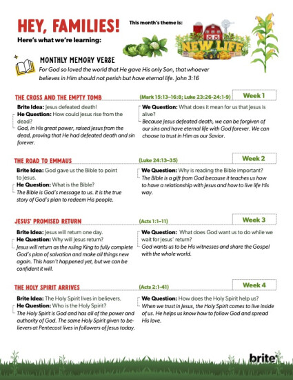 Parents, get an overview of the month and follow up at home by clicking the image below for this month's Bible stories: