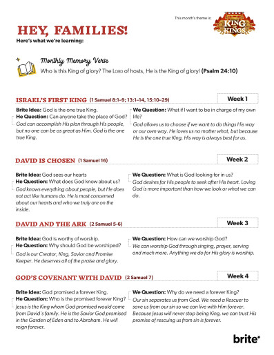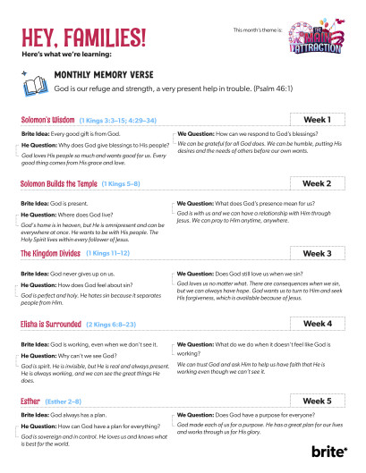 Parents, get an overview of the month and follow up at home by clicking the image below for this month's Bible stories: